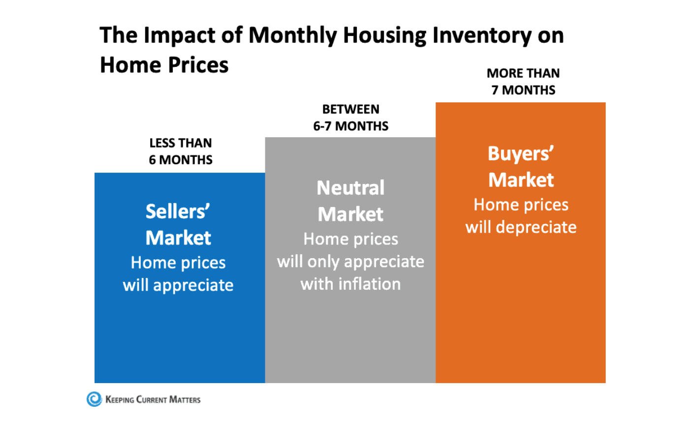 Historically, a 6-month supply is necessary for a 'normal' or 'neutral' market in which there are enough homes available for active buyers (See graph below):
