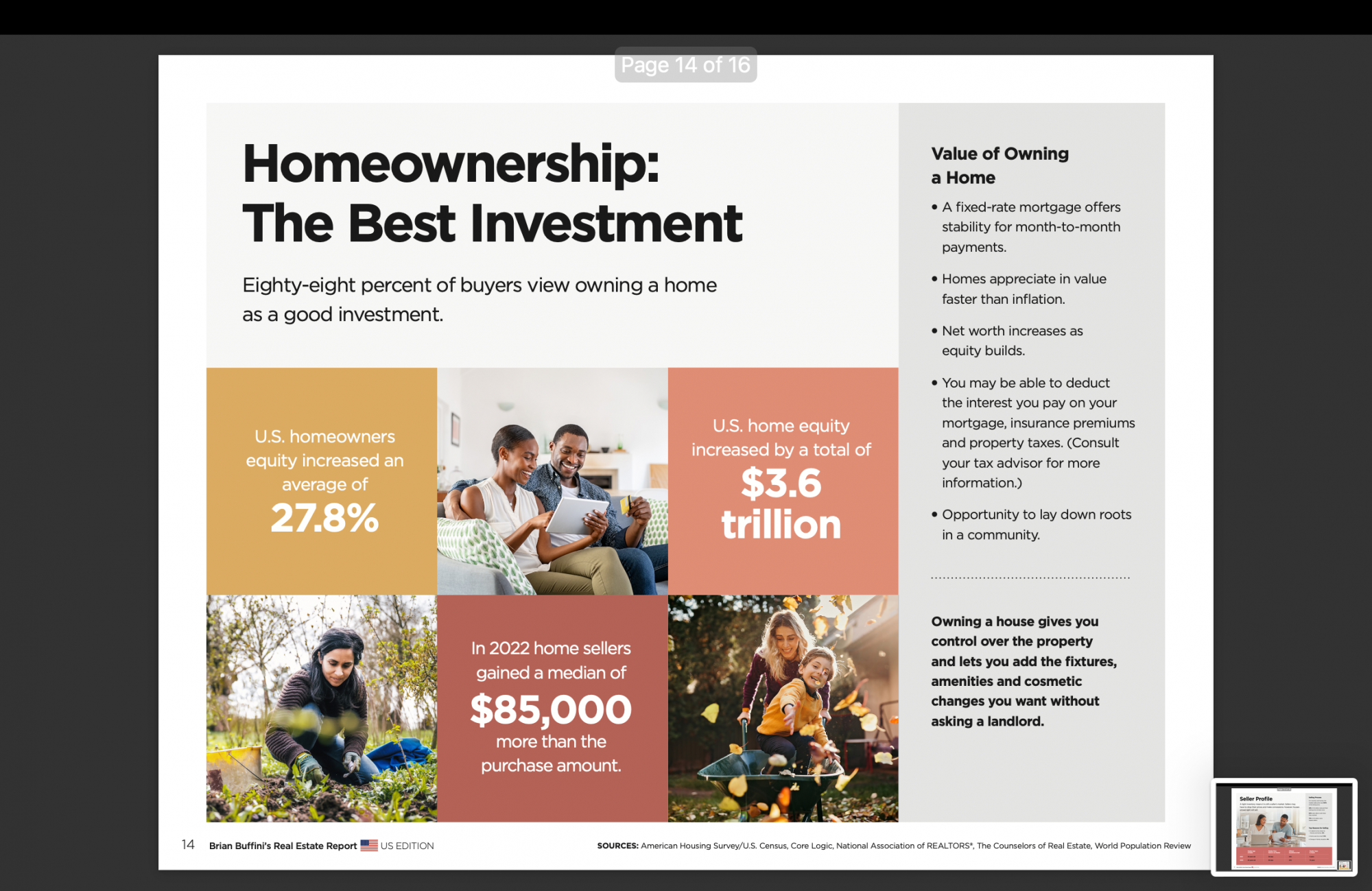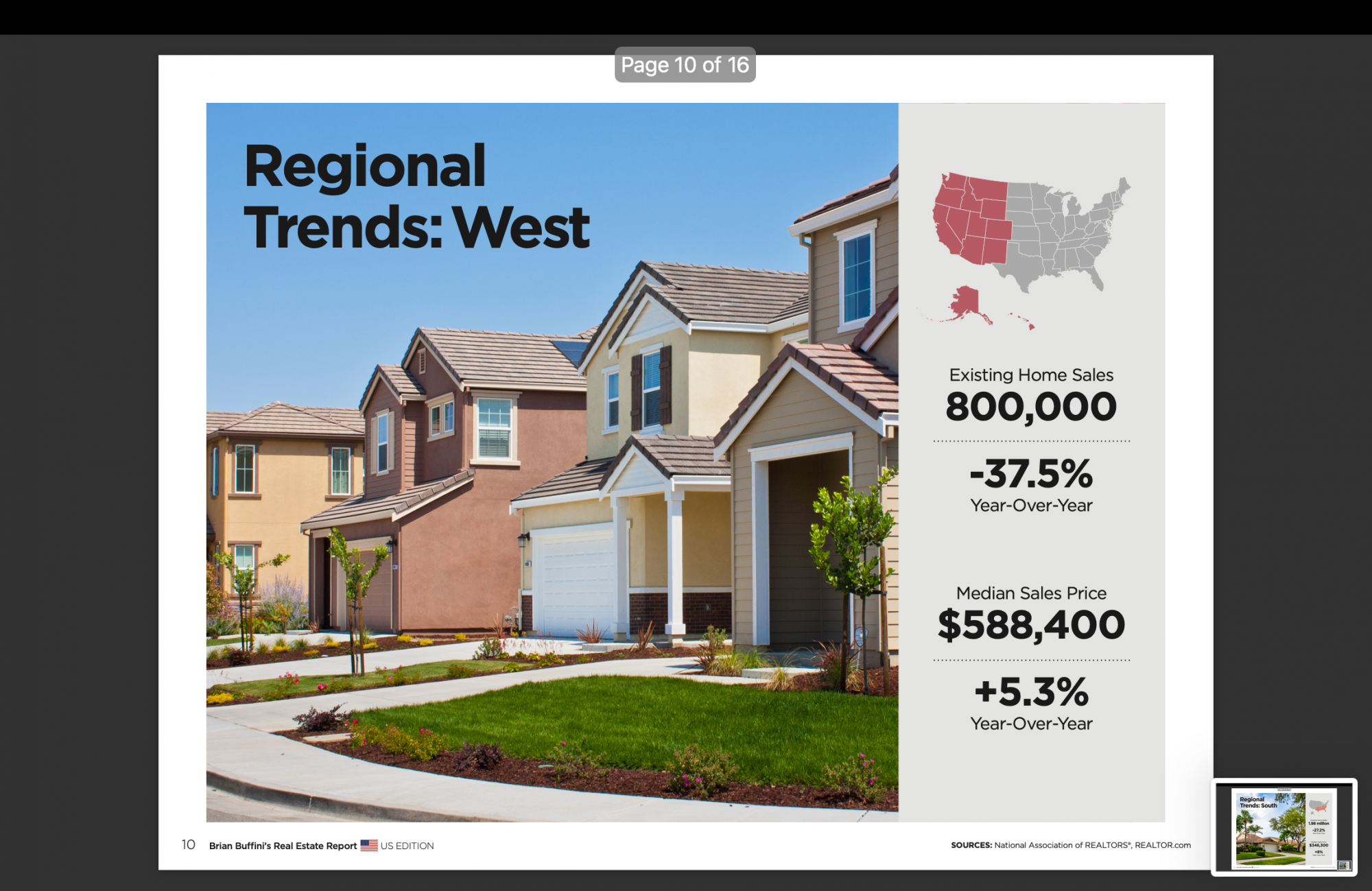 Today's buyers and sellers face unique challenges, and it's up to a trusted real estate professional to guide you through this wild market. To help with this mission, I work with Brian Buffini in providing this Real Estate Report. This serves as a guide that provides relevant informaiton to help you understand what's going on in your region and at the national level. Dice in and learn all that you need but if you want LOCAL informaiton seek a LOCAL expert .... Wes Atiyeh®