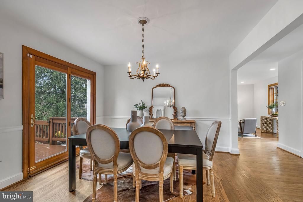 FALLS CHURCH | LAKEWOOD — Updated and expanded 4BR/3.5BA stone-and-brick farmhouse set on over one-third-acre lot surrounded by mature trees. Originally built in 1948, the home retains its original woodwork and hardwood floors, paired with beautifully updated spaces and exceptional outdoor living. The main level offers a gracious living room with a marble-surround fireplace, a separate dining room with French doors to the deck, and an updated kitchen with granite counters and stainless steel appliances. The kitchen opens to a breakfast/sunroom that flows directly to a spacious screened porch overlooking the backyard — an easy setup for everyday living and relaxed entertaining. A half-bath room completes this level. Upstairs you’ll find three bedrooms and two updated baths. The spacious ensuite primary includes a large walk-in closet with a window, and a beautifully renovated bath with a double vanity. The lower level adds a comfortable family room with a stone gas fireplace, built-in shelving, and a wall of windows facing the backyard. There’s also a generous laundry and storage room plus a dedicated workroom. The attached two-story apartment is a standout with a private entrance, living area, kitchenette, full bath, and upper-level bedroom — ideal for guests, extended family, or flexible work-from-home space. Outside, enjoy lush landscaping, stone pathways, a screened porch, spacious deck, brick patio, large shed, and a fully fenced backyard complete with flowering gardens. Convenient to DC, Tysons, and Alexandria, and easy access to major commuter routes (495/395/50/66). A rare opportunity to own a character-filled farmhouse with flexible living and exceptional outdoor space in one of Falls Church’s most convenient neighborhoods.